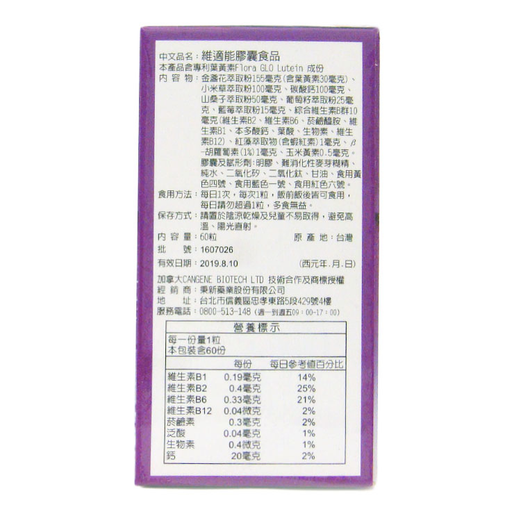 金盞花萃取30mg、小米草萃取100mg、鈣100mg