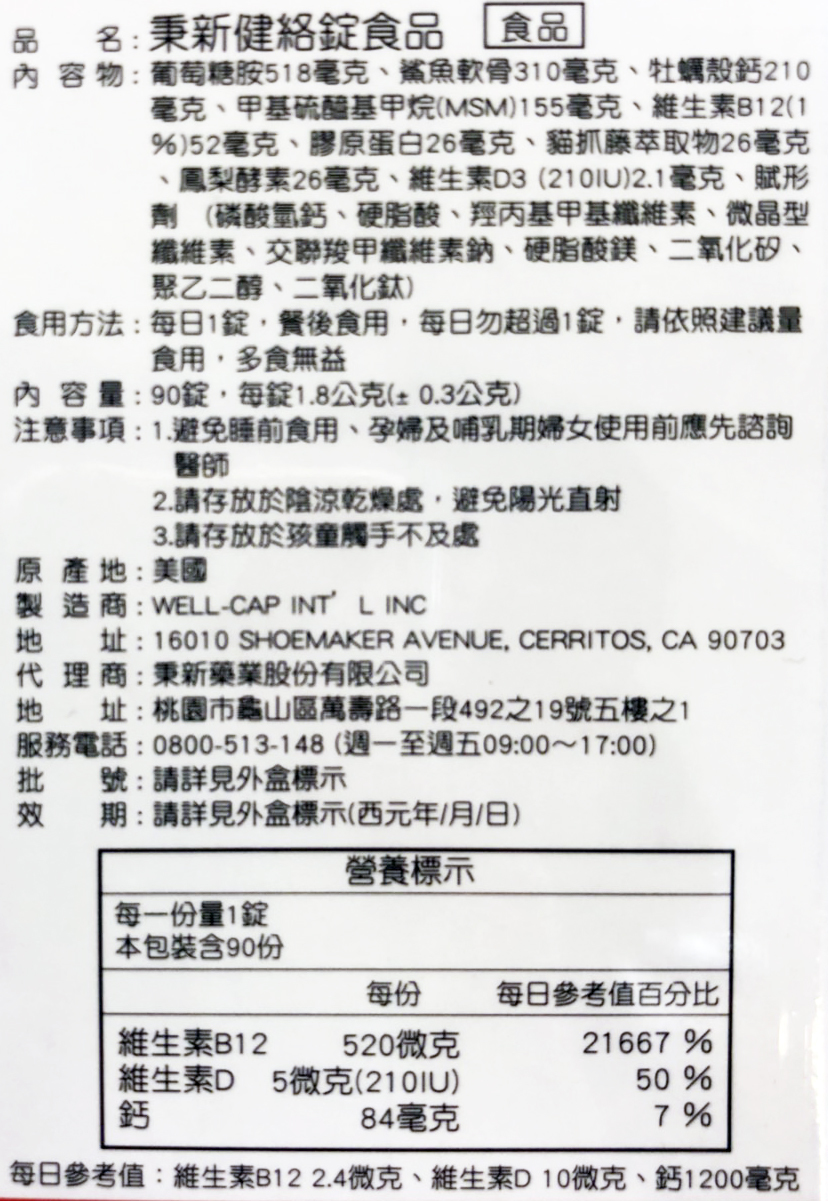 秉新 健絡錠九合一葡萄糖胺 300錠