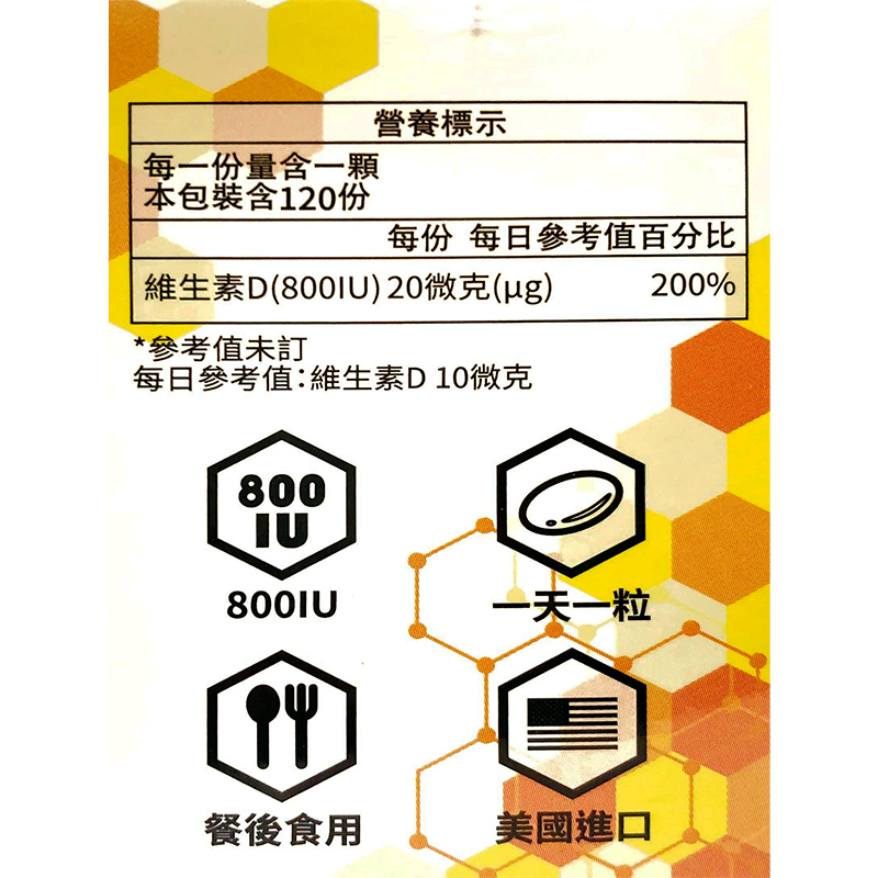 【秉新】維生素D3 800IU 活力軟膠囊 120粒/罐|美國進口【康富久久】
