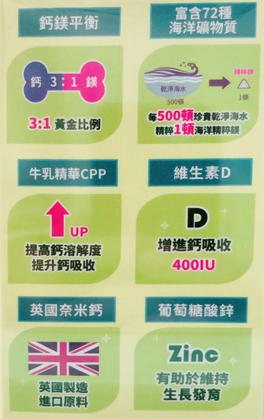 ◆採用檸檬酸鈣,鈣吸收率提升30%。