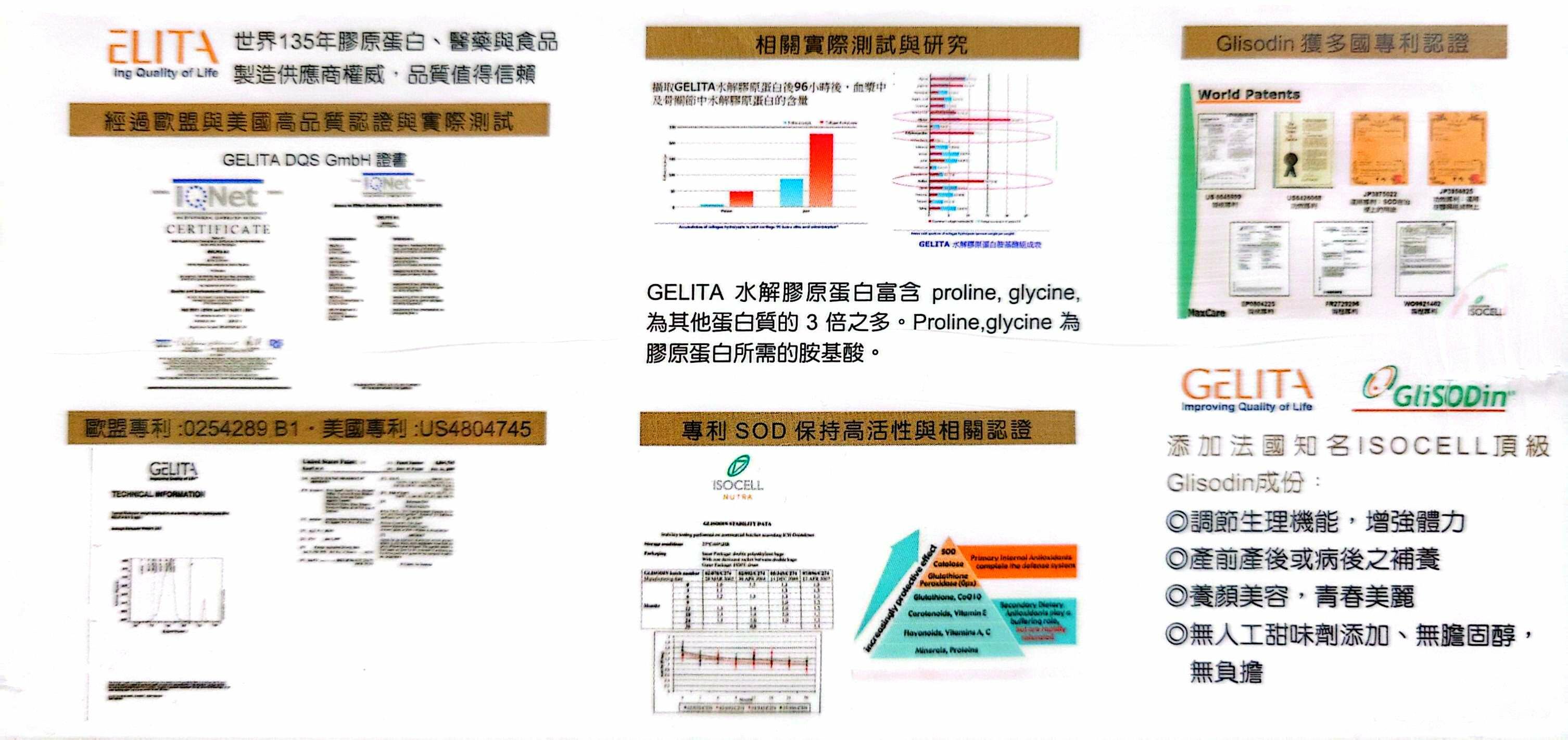 原料製造廠:德國Gelita AG、法國ISOCELL NUTRA
