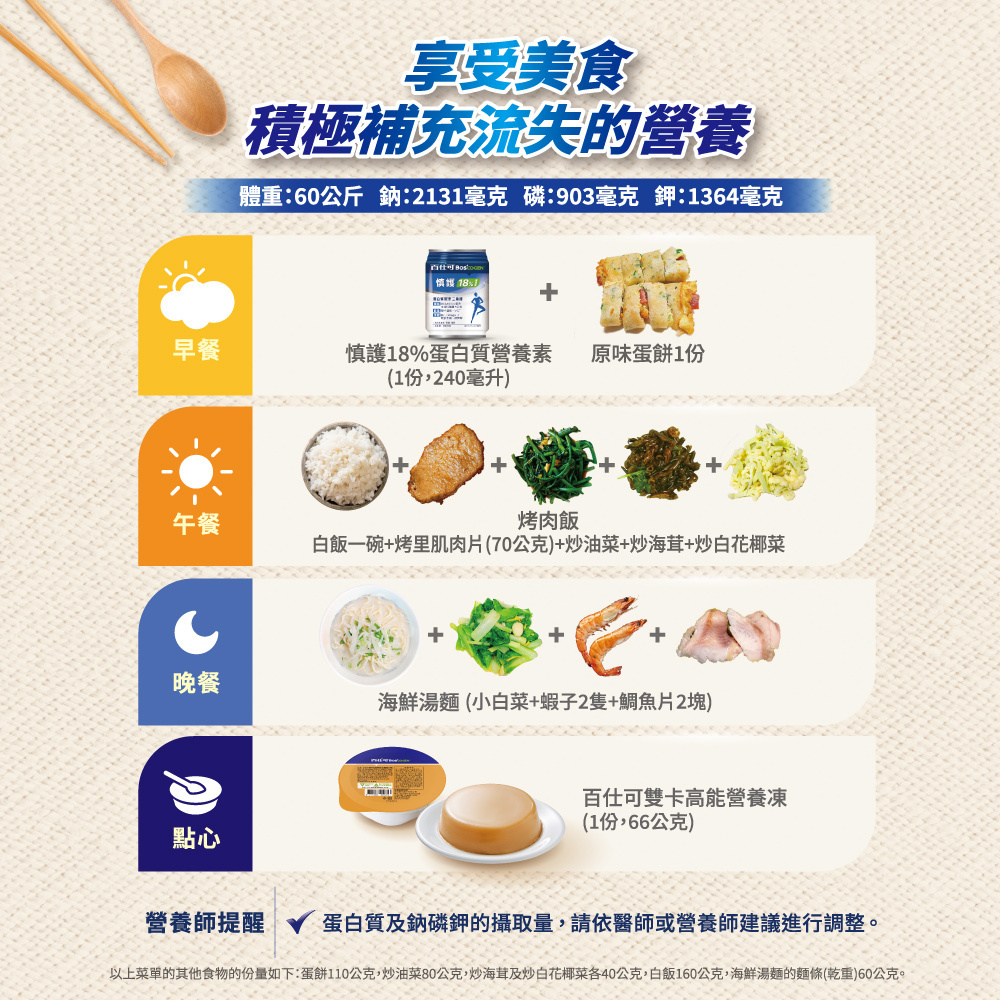 新一代蛋白質管理**營養素- 補能量、增體力、護機能一次到位