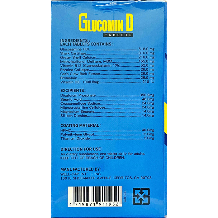 含有葡萄糖胺、鯊魚軟骨素、牡蠣殼鈣、貓爪藤、鳳梨酵素、膠原蛋白、MSM、維生素B12、D3等九種成分,可提供骨骼、關節、神經系統之營養需求。