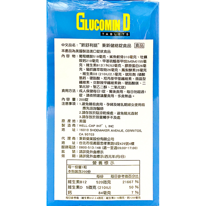 內容物:葡萄糖胺518毫克、鯊魚軟骨310毫克、牡蠣