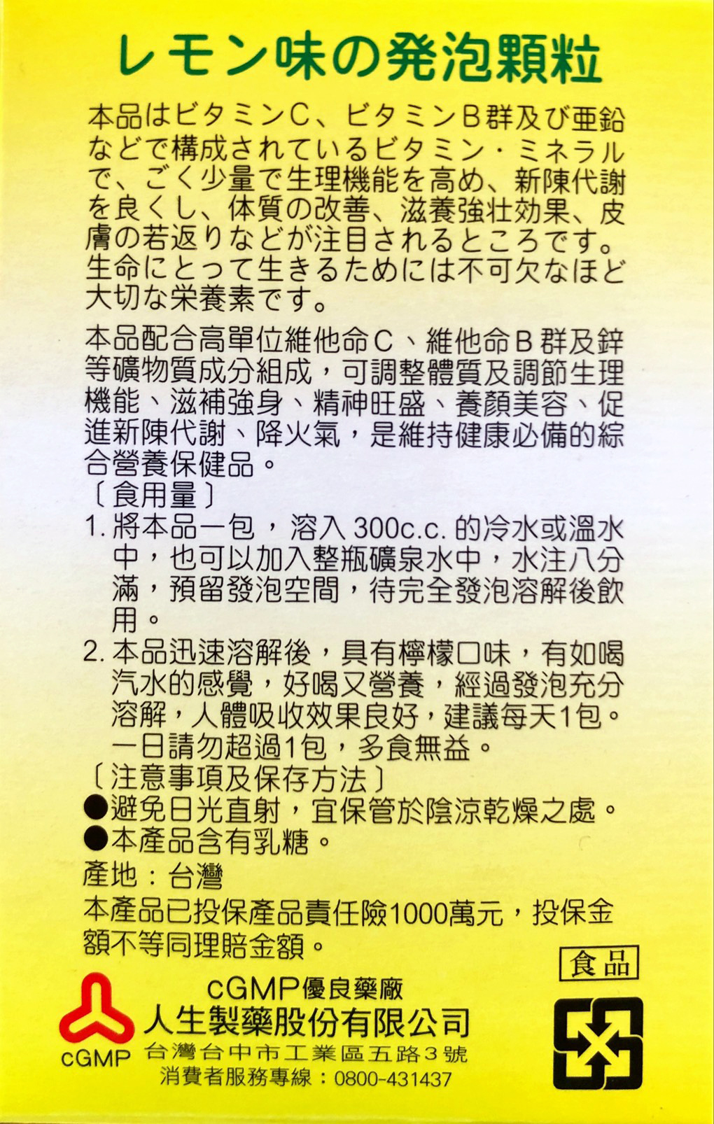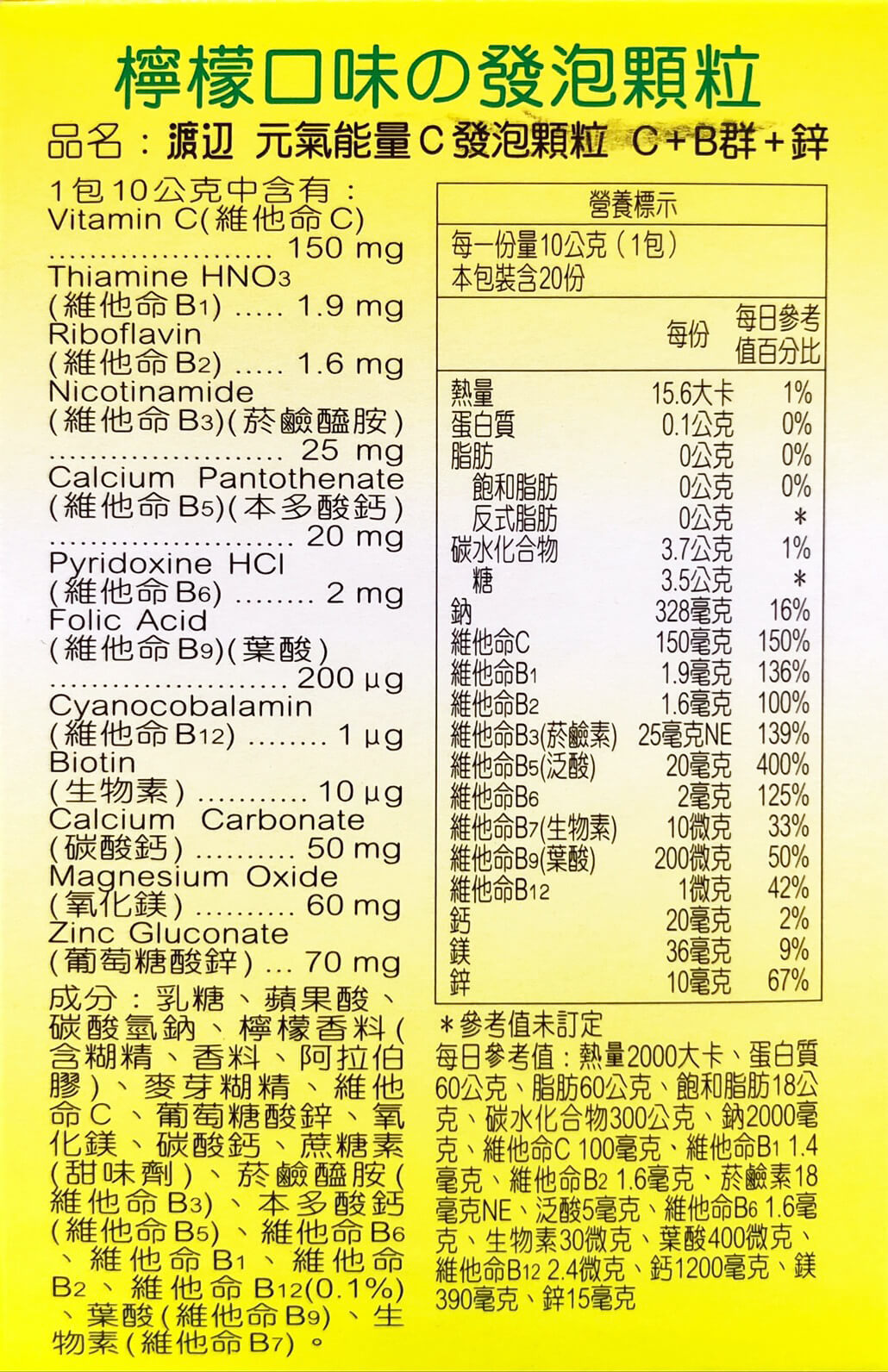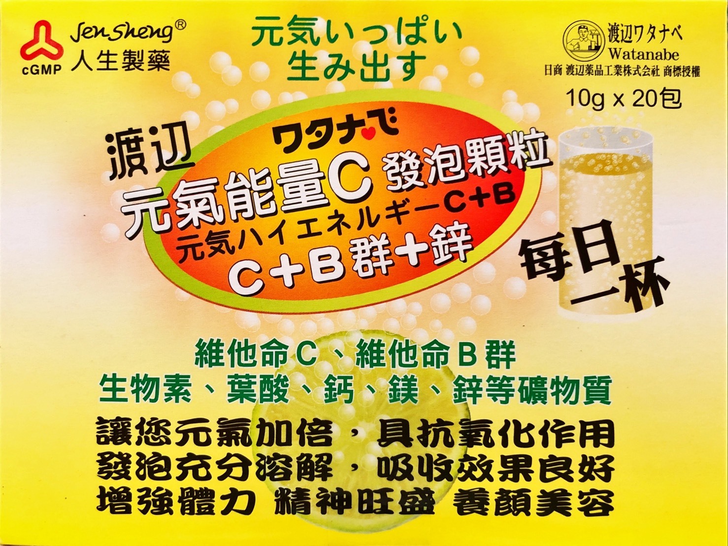 品名 : 人生製藥 渡邊元氣能量C發泡顆粒 C+B 群+鋅