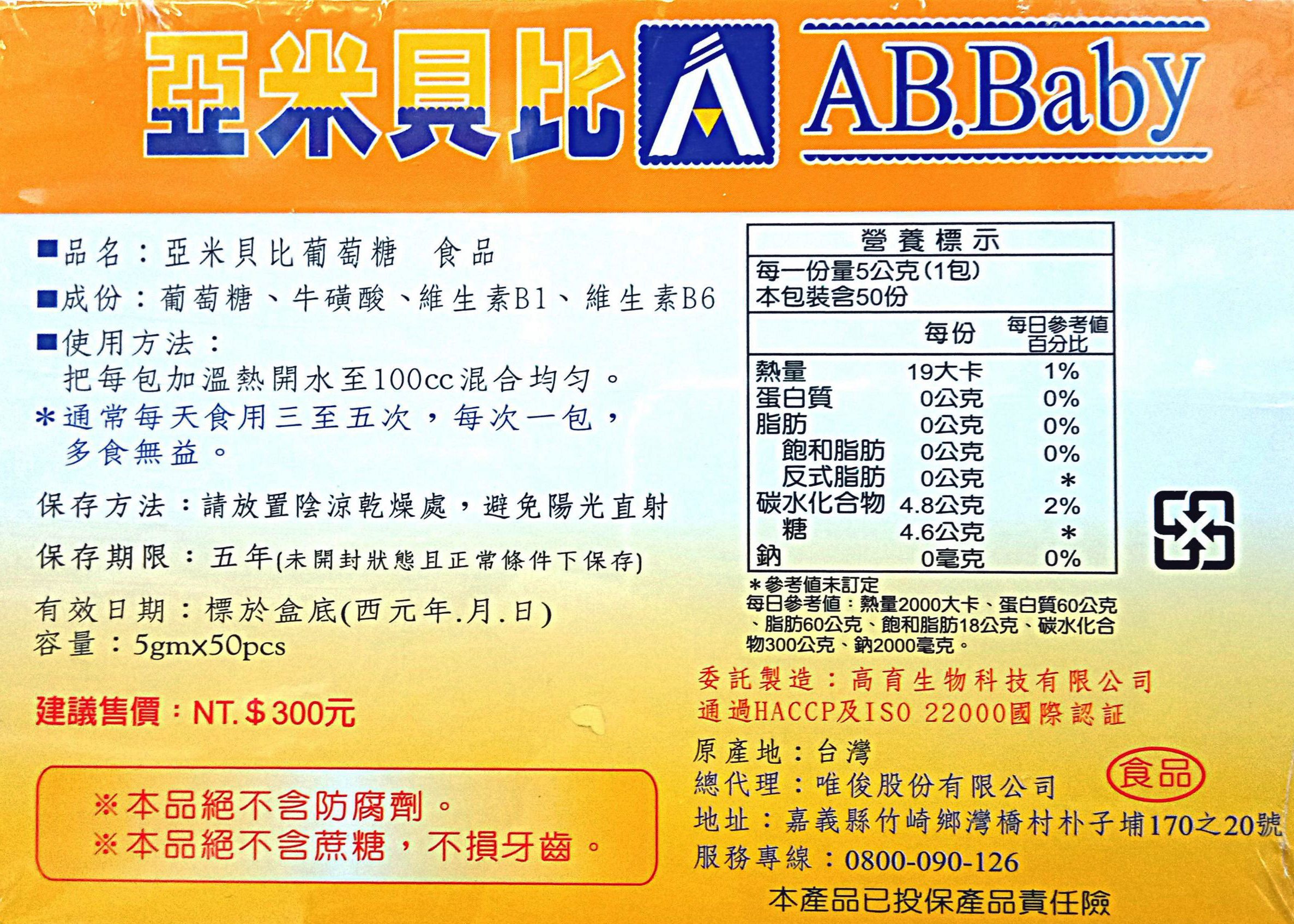 成份:葡萄糖、牛磺酸、維生素B1、維生素B6