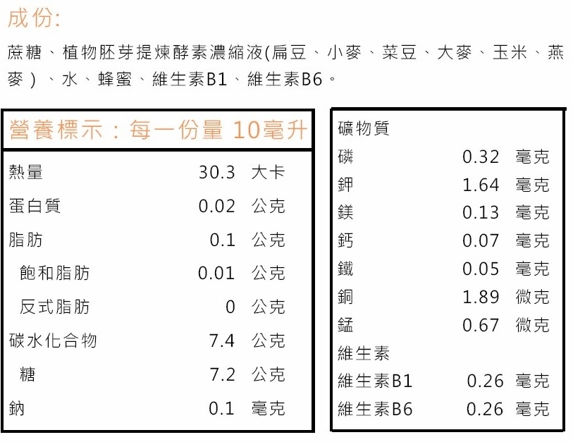 含豐富碳水化合物、酵素Enzymes、球蛋白Globulins、維生素B1和B6等,對素食者、無胃口、