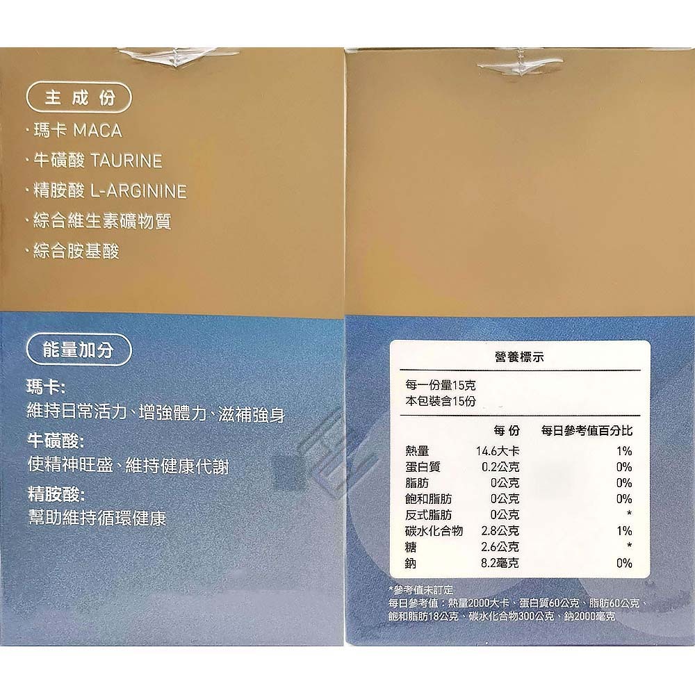 檸檬酸鈉、葡萄濃縮汁、椰子油、澱粉、黑馬卡、紫紅馬卡、黃馬卡、牛磺酸、牡