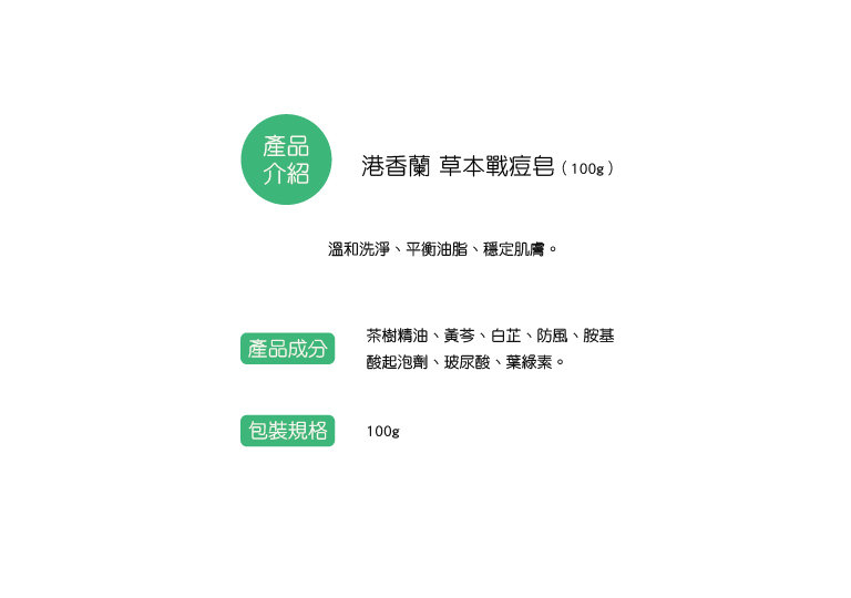 港香蘭 草本戰痘皂 100克 青春痘 油性肌 茶樹精油 玻尿酸 葉綠素 溫和洗淨 控油 調理肌膚