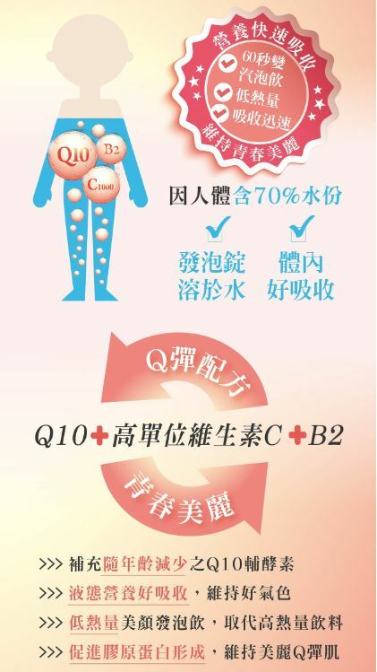 💯添加雙效美顏成分輔酵素Q10 與高單位維生素C