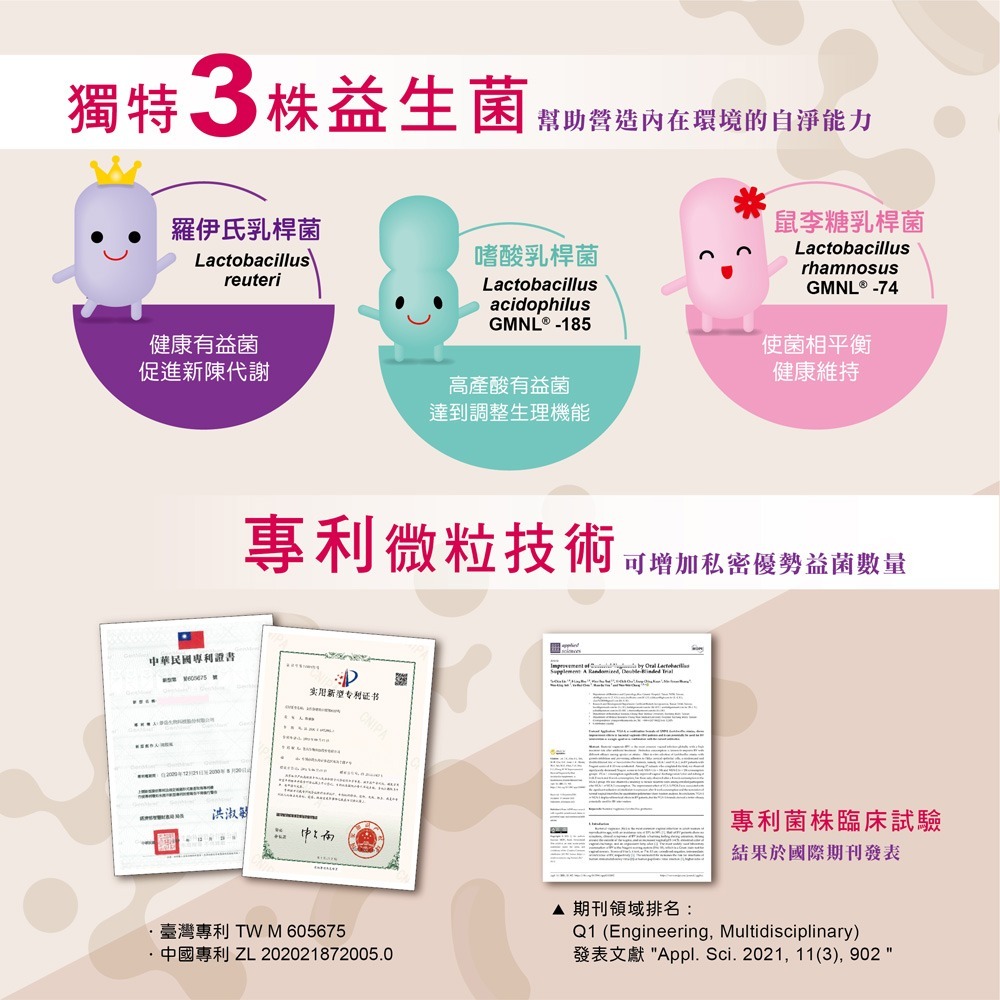 ★獨特蔓越莓精粹,含濃縮奎寧酸及花青素,與特殊獨特菌株相輔相成,由內而外建立健康菌叢生態,營造內在環境自淨能力。