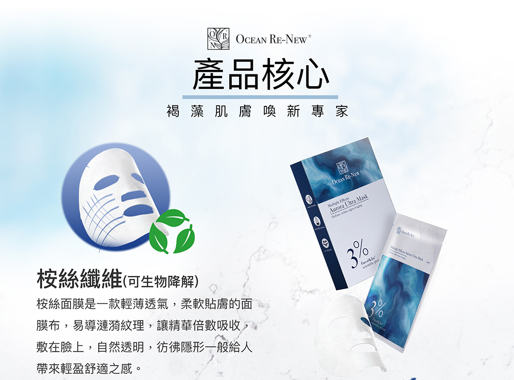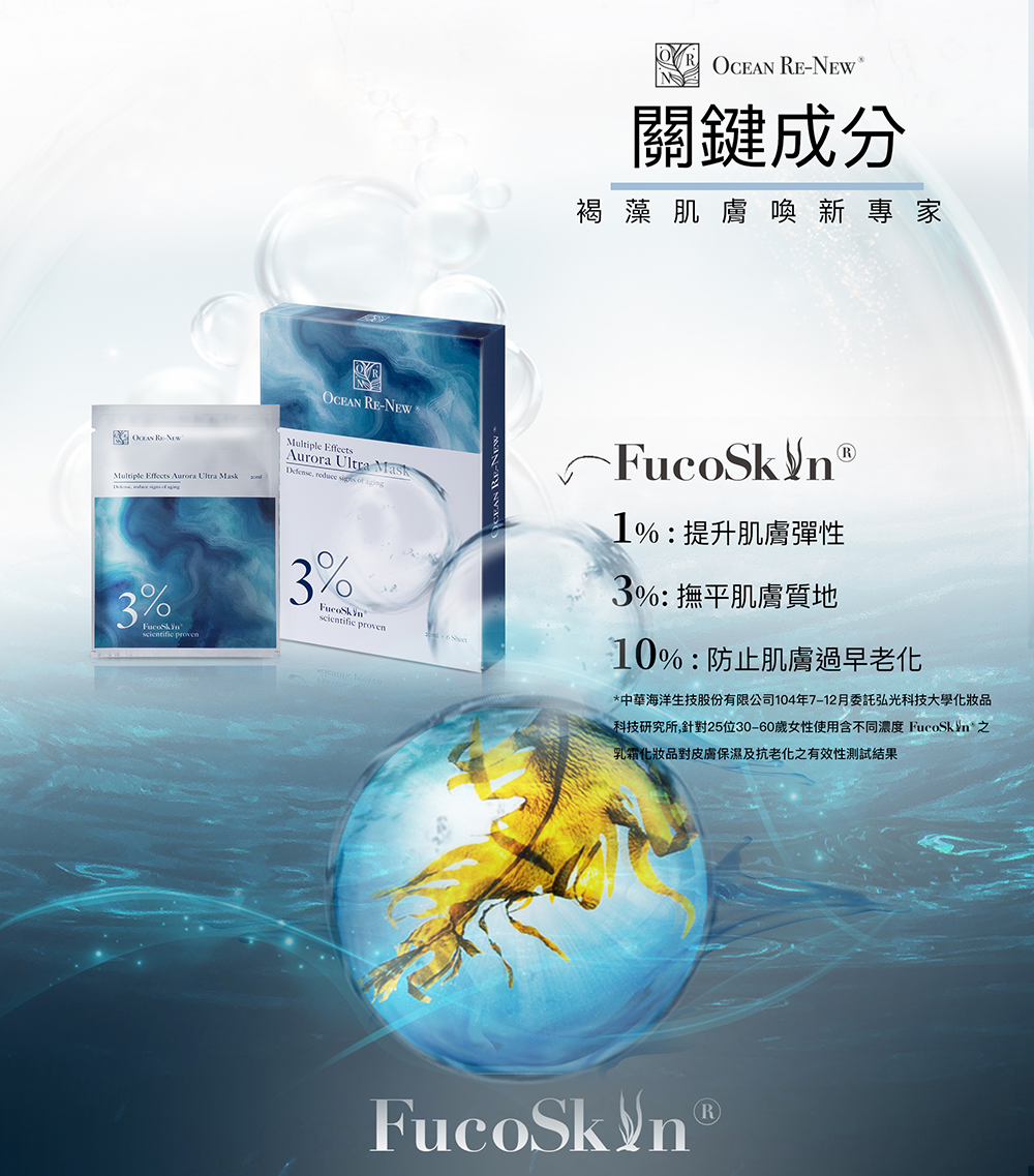 含核心成分3%FucoSkin®提升肌膚對環境傷害的保護力,一敷重現肌膚極透光感。