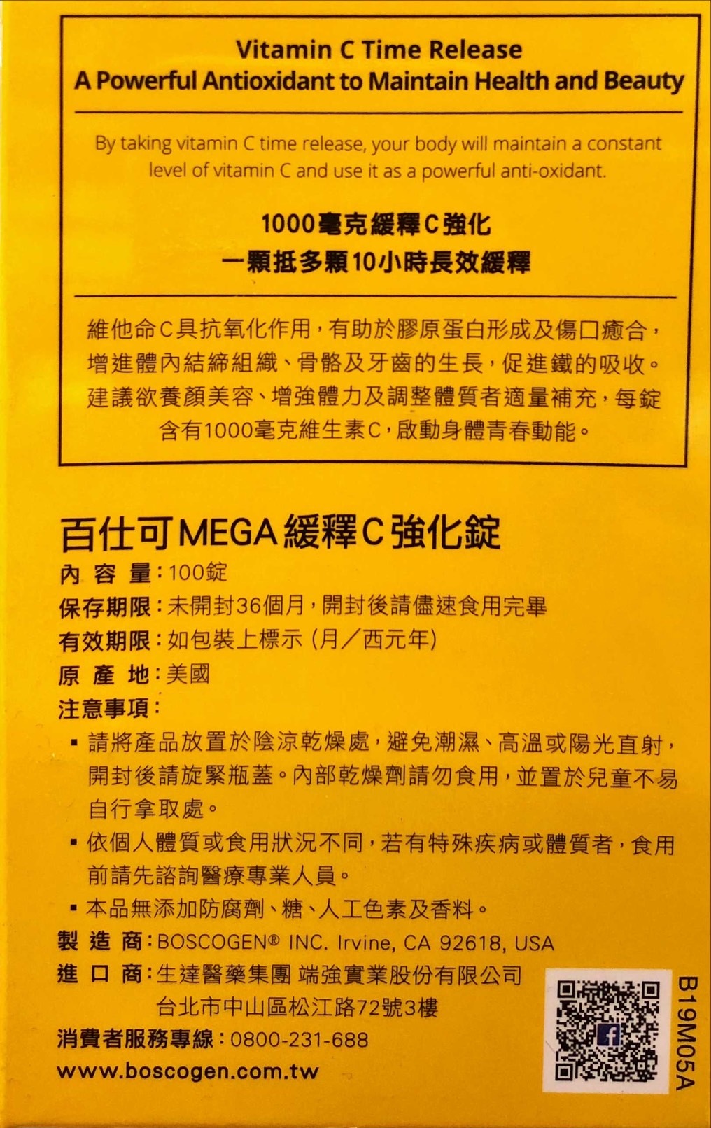 品名:百仕可MEGA緩釋C強化錠100錠/盒