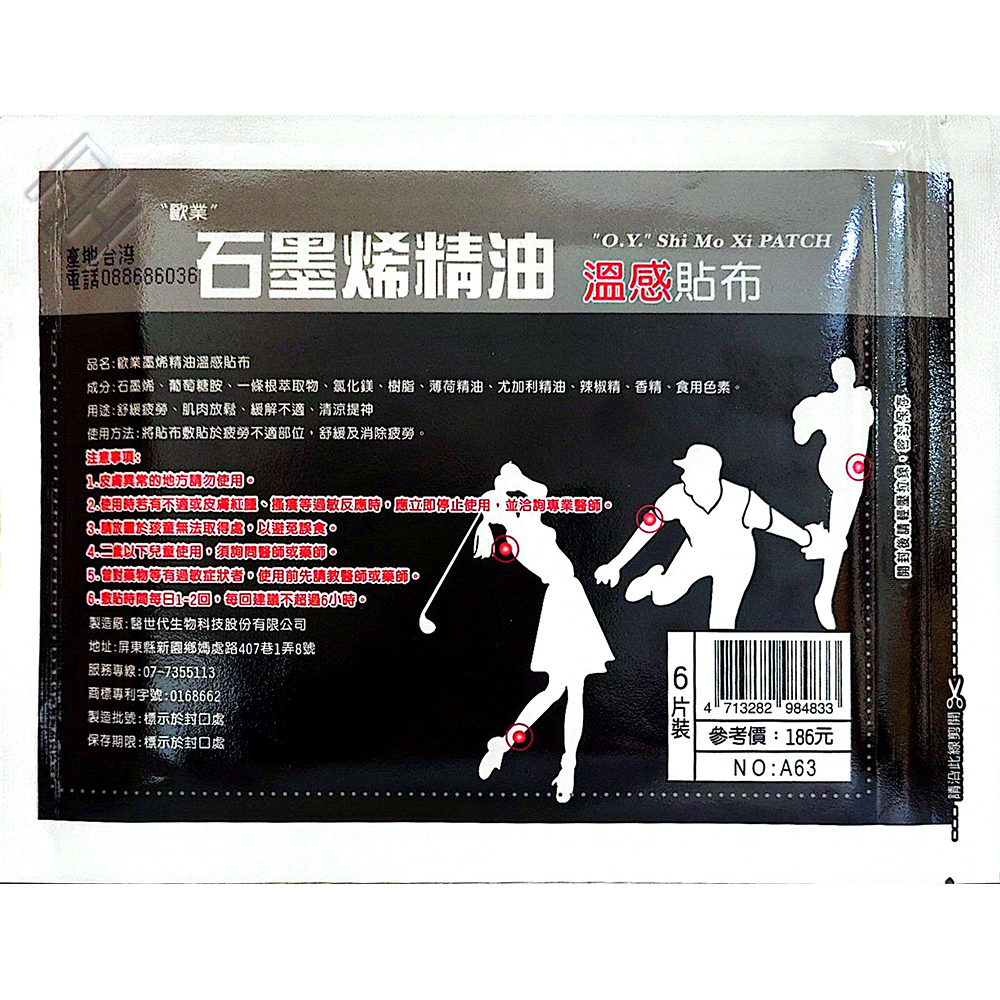 歐業石墨烯精油溫感貼布6片裝