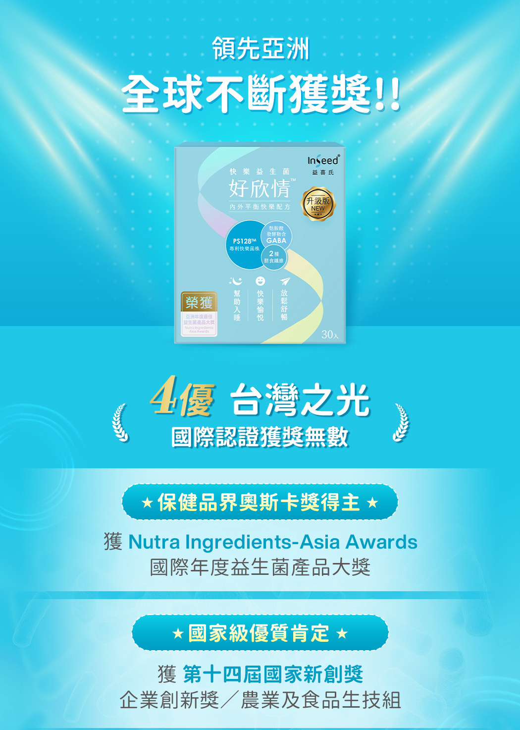 ◎ 獨家菌株 - PS128菌株為亞洲第一支快樂益生菌(每包含200億以上)