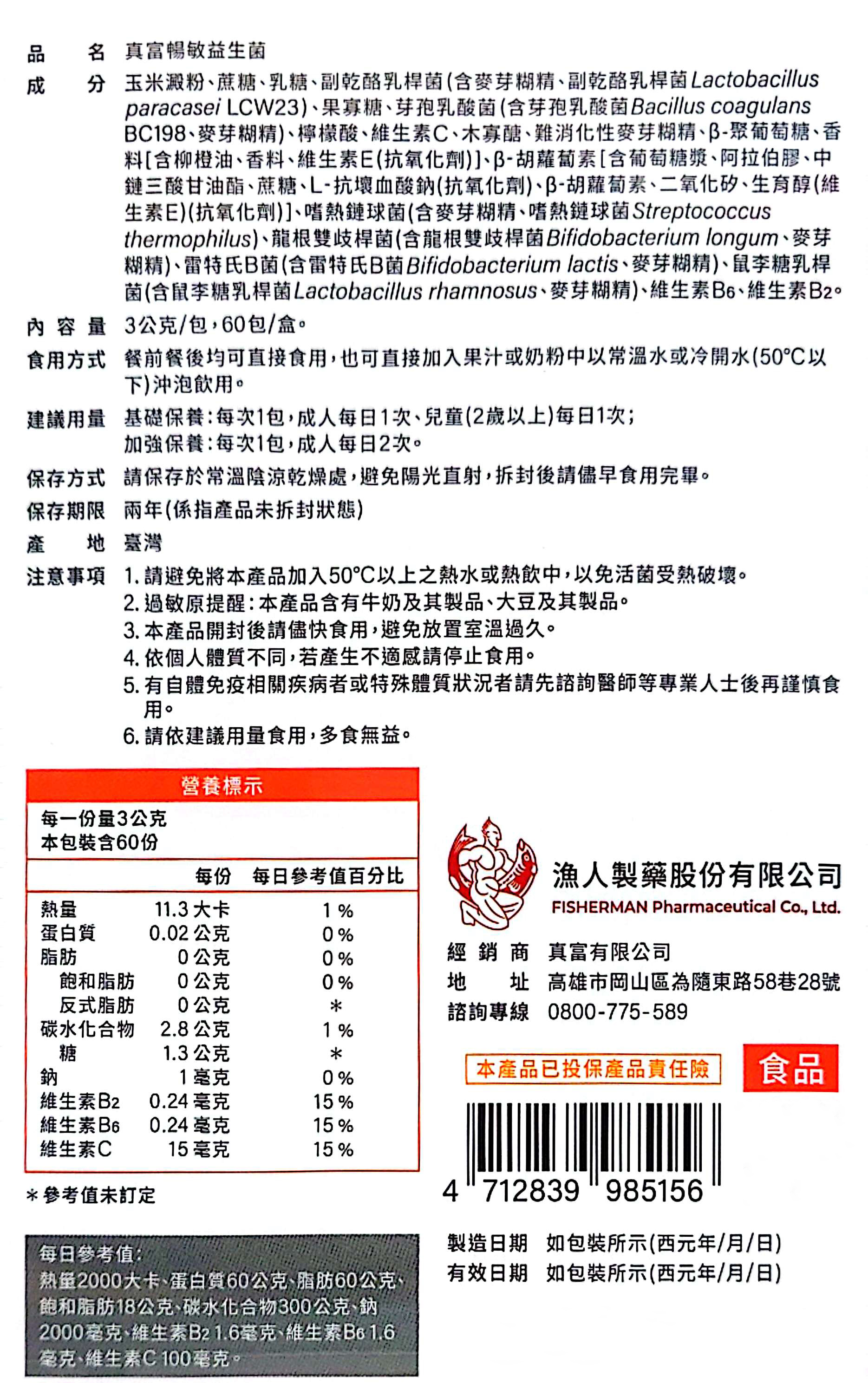 品名:真富暢敏益生菌