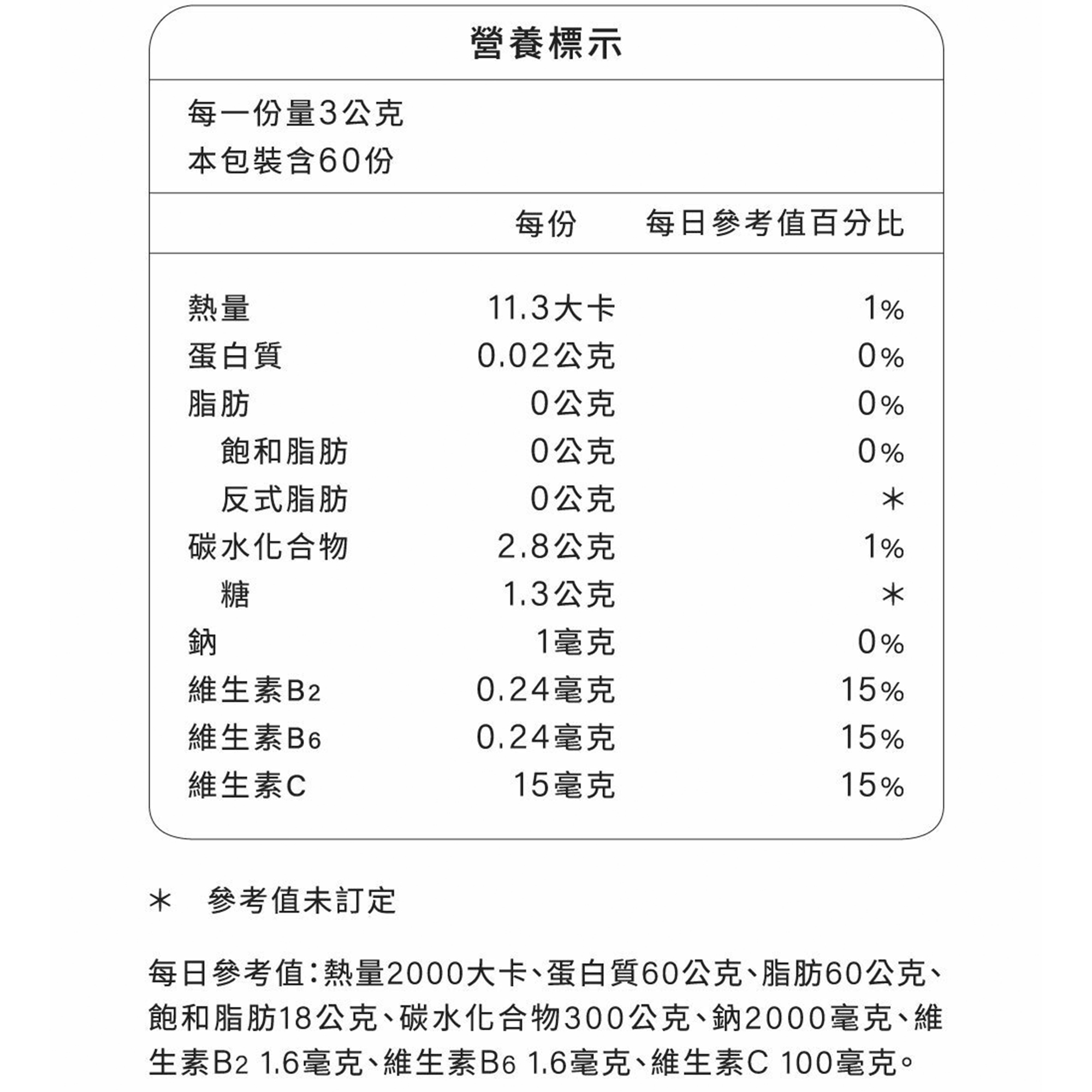 內容量:3公克/包,60包/盒