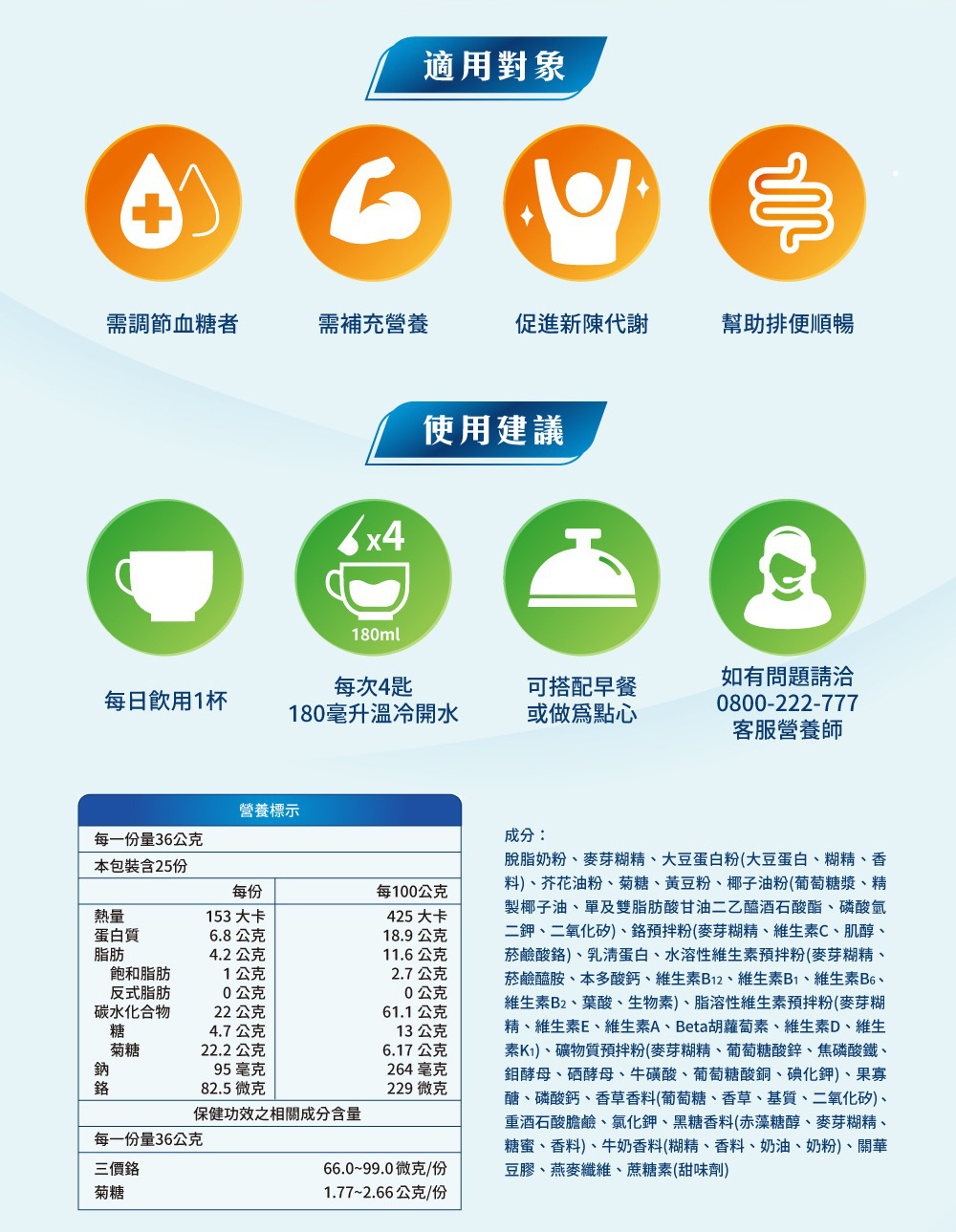 ✨高纖:燕麥纖維,增加飽足感,維持消化道機能